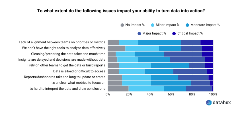 Our recent research, Time to Insight, found that roughly 7 in 10 respondents say issues like delayed insights, time spent preparing data, and unclear metrics meaningfully hinder their ability to turn data into action.