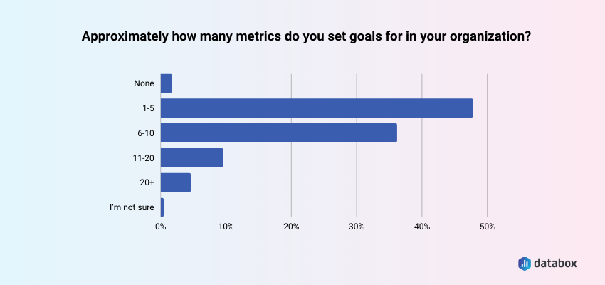 Databox’s State of Business Reporting survey found that 47.09% of teams set goals for 1 to 5 metrics; a deliberate decision about which numbers actually move their behavior. A dashboard that ignores that discipline produces the opposite effect: decision paralysis dressed up as data visibility.