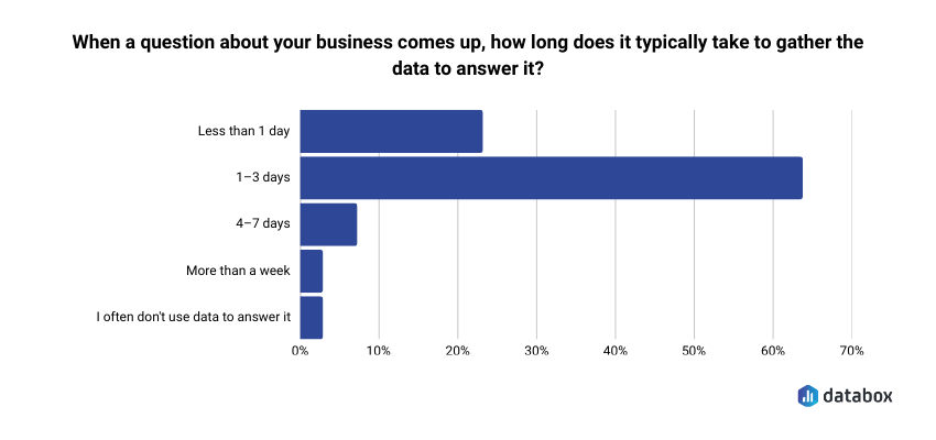 - Databox’s own research found that only about half of employees are well-trained in analyzing data and creating reports, and 64.29% of teams say it takes 1–3 days to answer a basic business question.