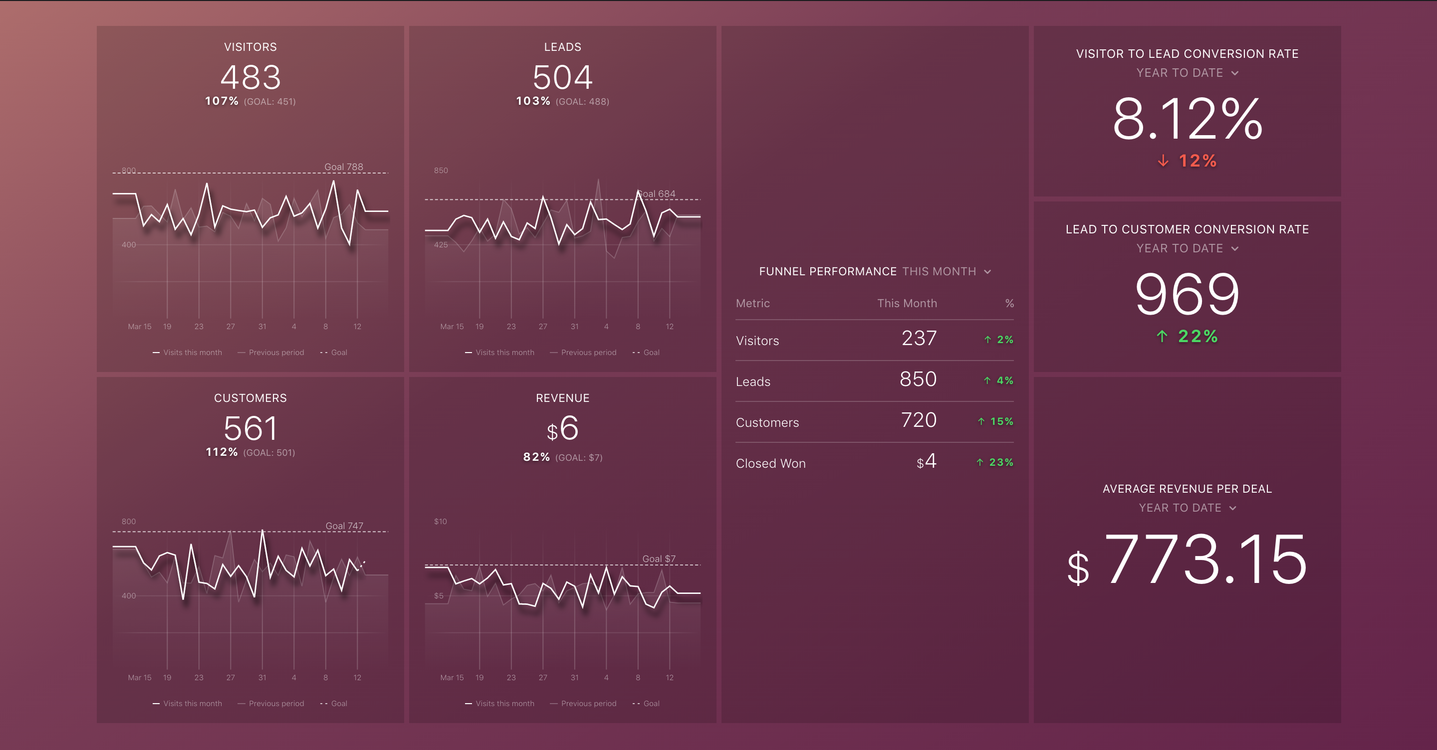 Benefits: Helps you monitor both your conversion rates and your progress to your traffic and lead goals.