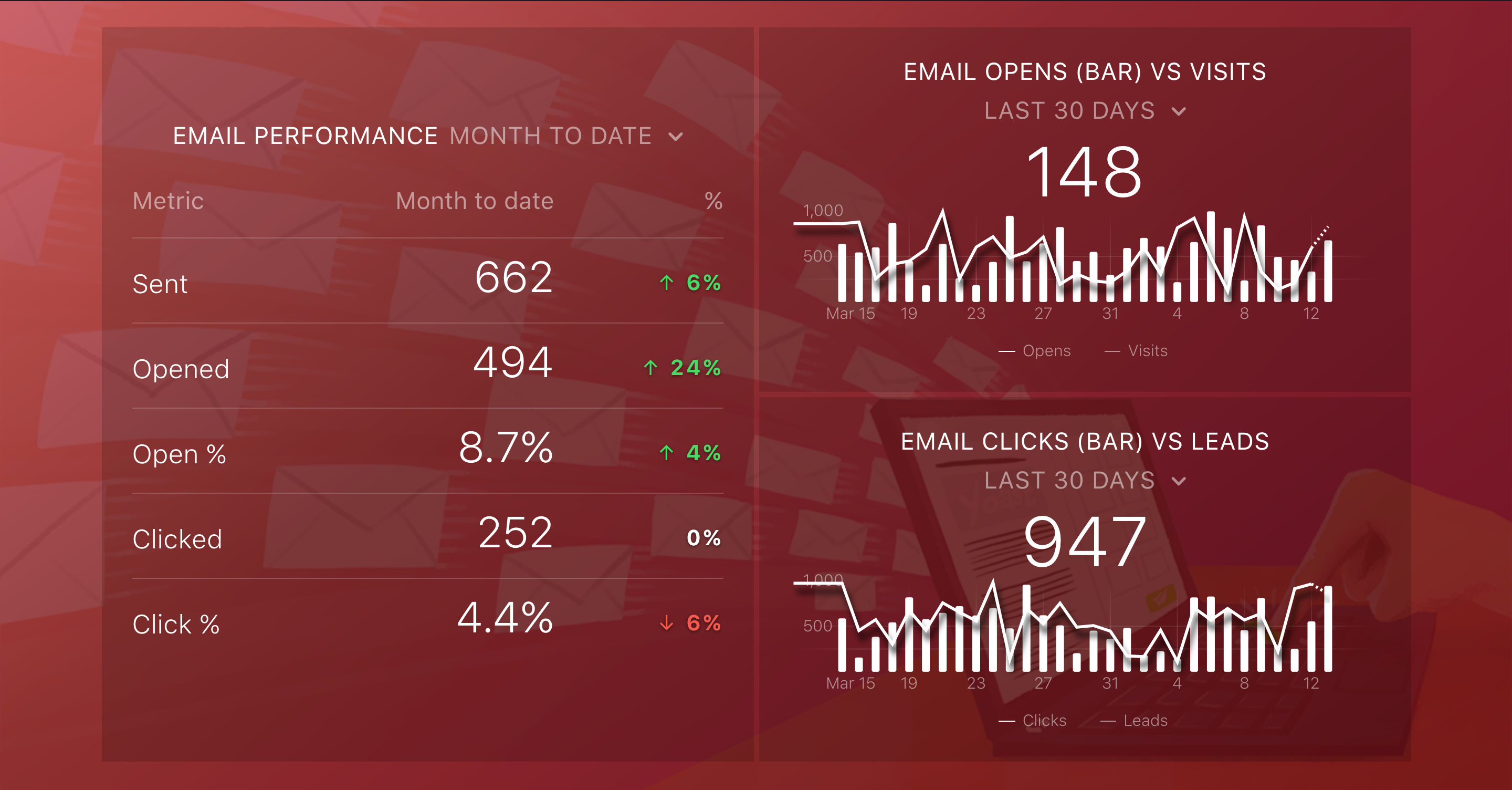Benefits: Lets you see how email marketing translates to web traffic and leads.