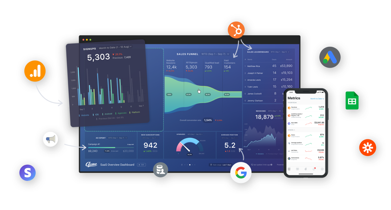 Klipfolio offers a few different ways to sync data into its platform. You’ll get to connect native integrations, SQL databases, REST API, FTP files, emailing files, and spreadsheets.