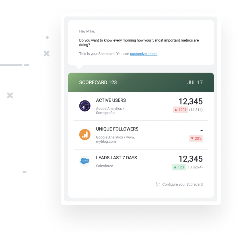 Predict future performance and create more realistic goals and strategies with Forecasts. But that’s not all! We’re constantly innovating and releasing more advanced features like Generative AI, Anomaly Detection, Advanced Benchmarks, and Metric Correlations.