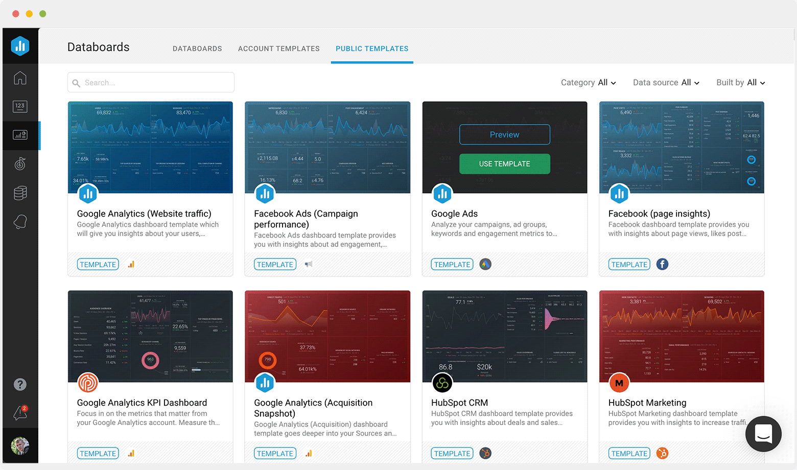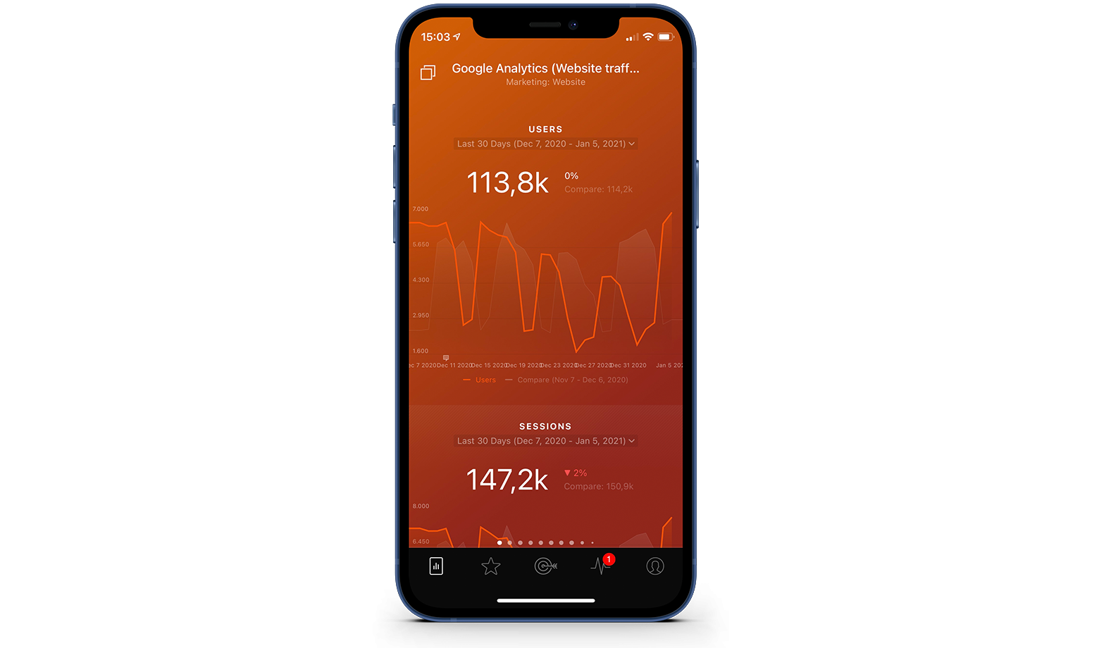 Alerts. Get alerted to changes in your data by setting percentage-change or numeric thresholds.