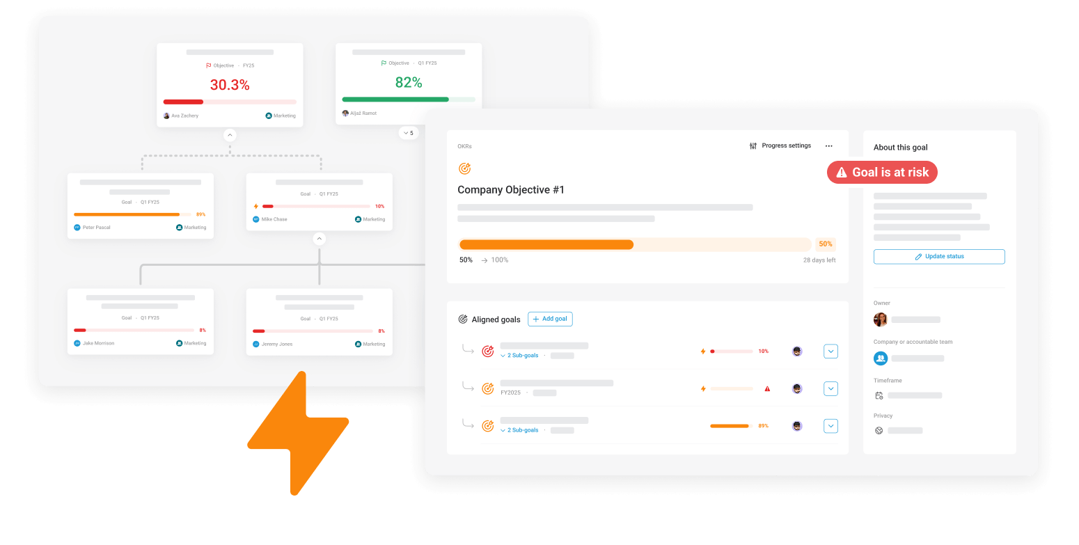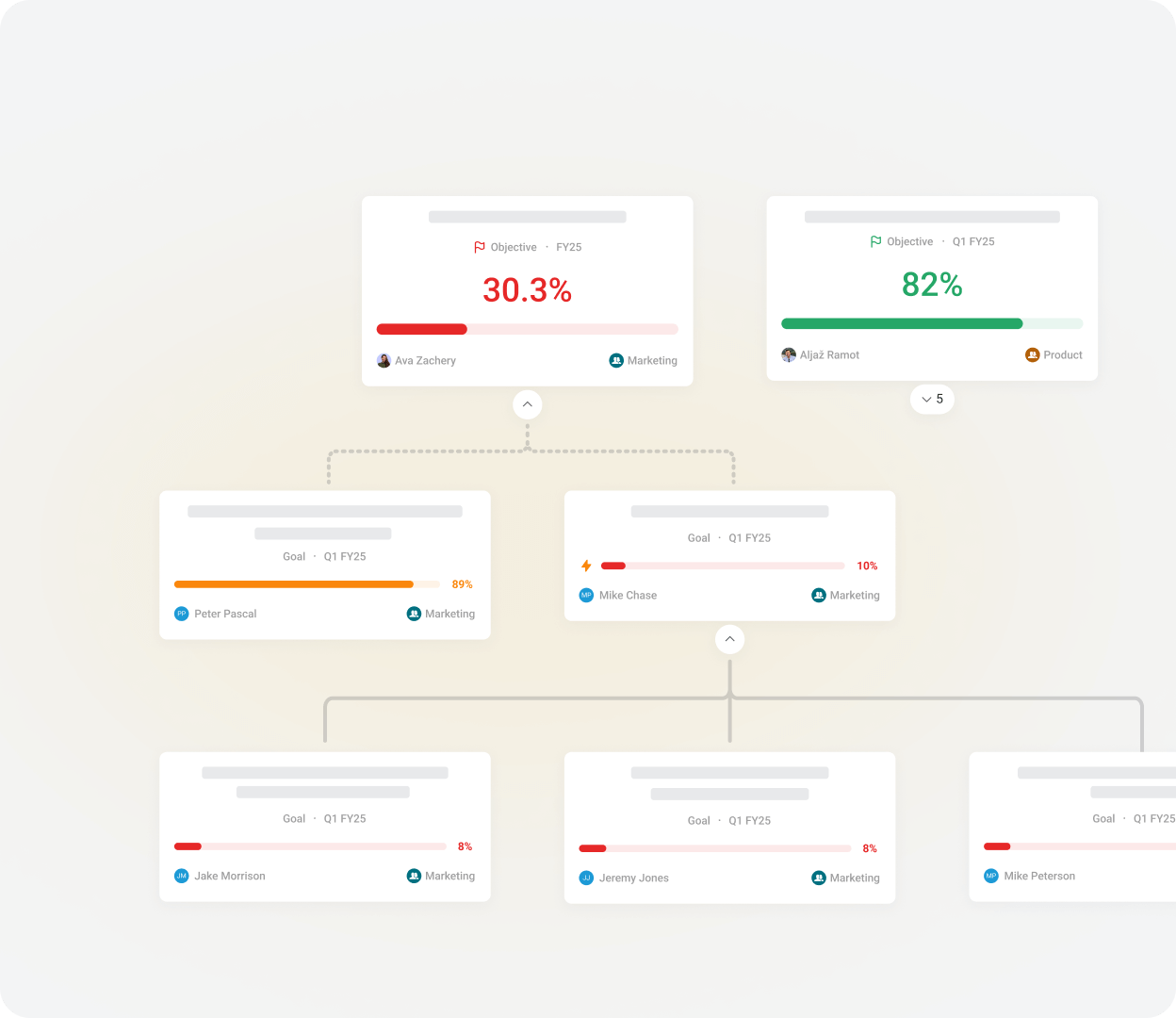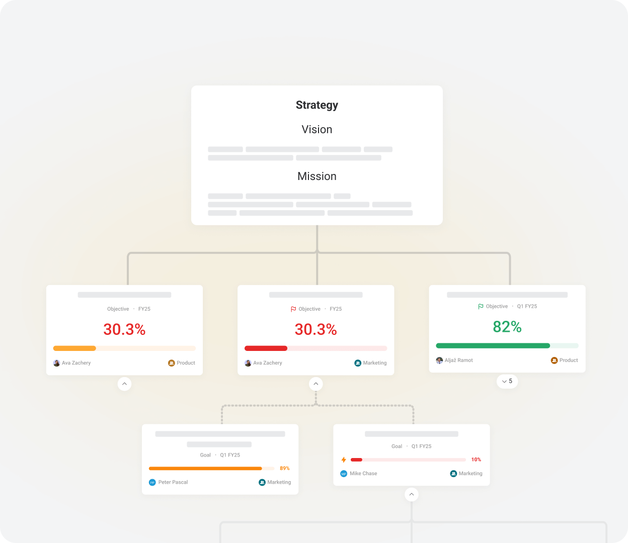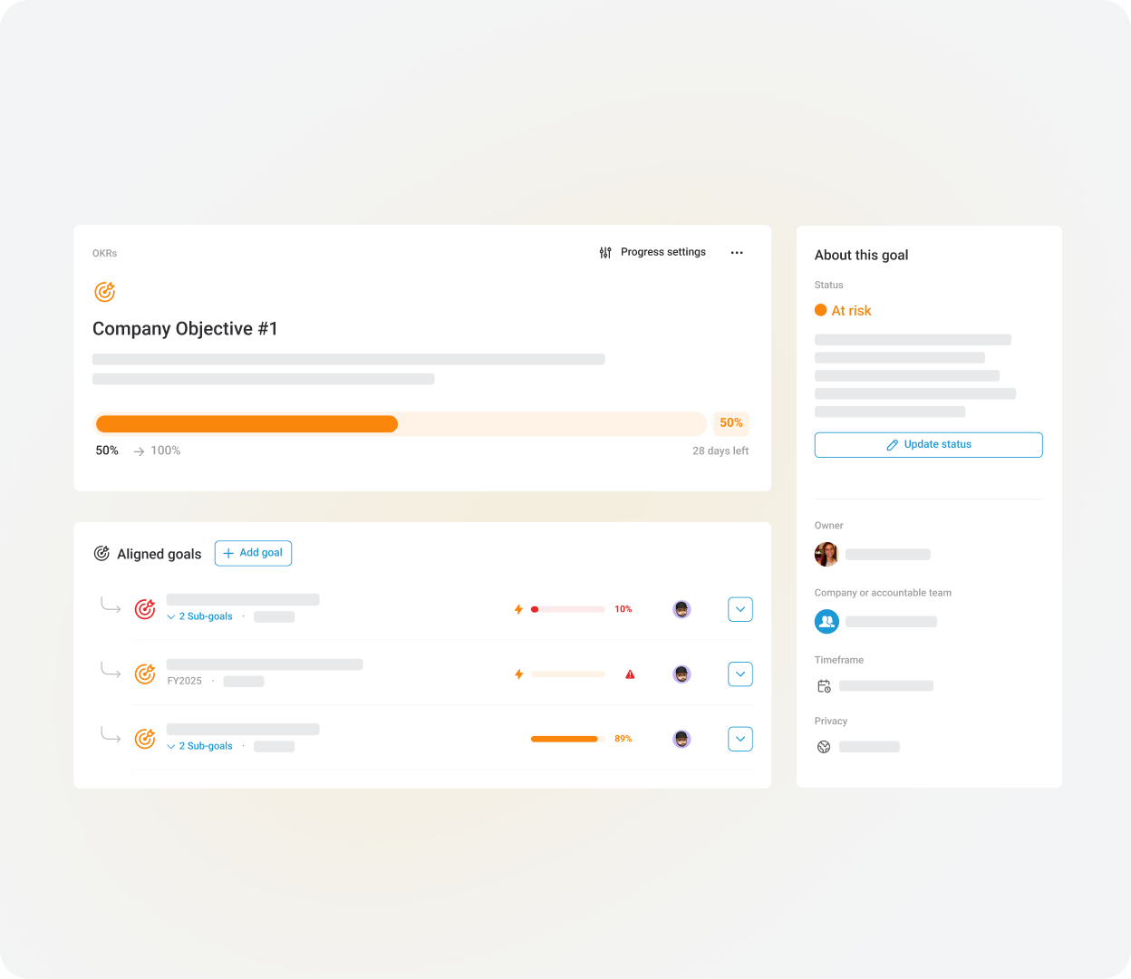Set company-wide objectives and link sub-goals, so every team and individual can see how their work supports the bigger picture.