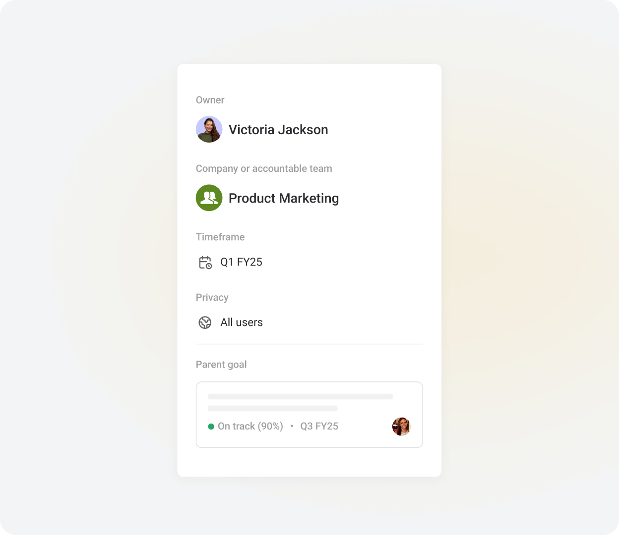 Publish your company’s mission and vision alongside objectives so teams know not just what they’re working toward, but why it matters.