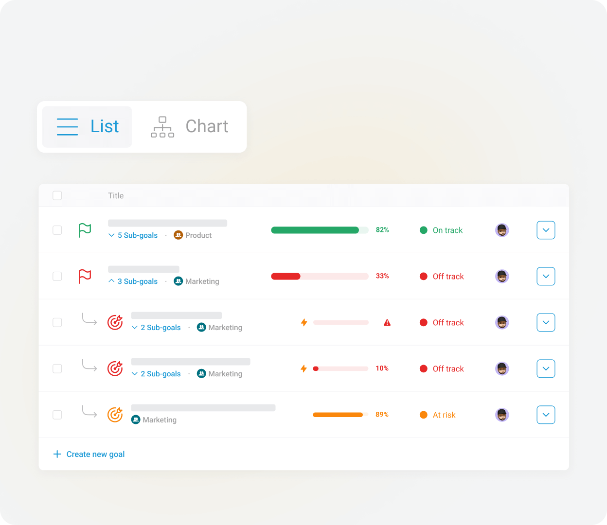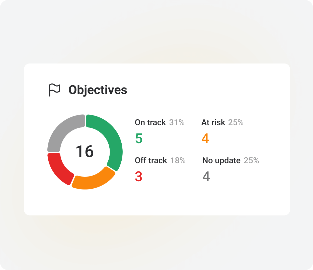 Get notified when goals are on track, at risk, or off track, so the right people always know where things stand.